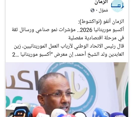 الزمان أنفو (نواكشوط): قال رئيس الاتحاد الوطني لأرباب العمل الموريتانيين، زين العابدين ولد الشيخ أحمد، إن معرض “أكسبو موريتانيا 2026” للصناعة الوطنية يمر بمرحلة مفصلية، مشيرًا إلى أن نتائجه “إيجابية” وتعكس تقدمًا ملموسًا في مسار تطوير القطاع الصناعي.
